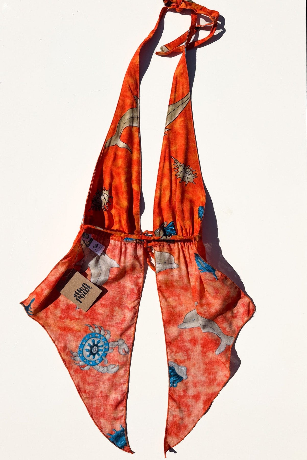 VTG ORANGE DOLPHIN BACKLESS HALTER TOP / XS-S
