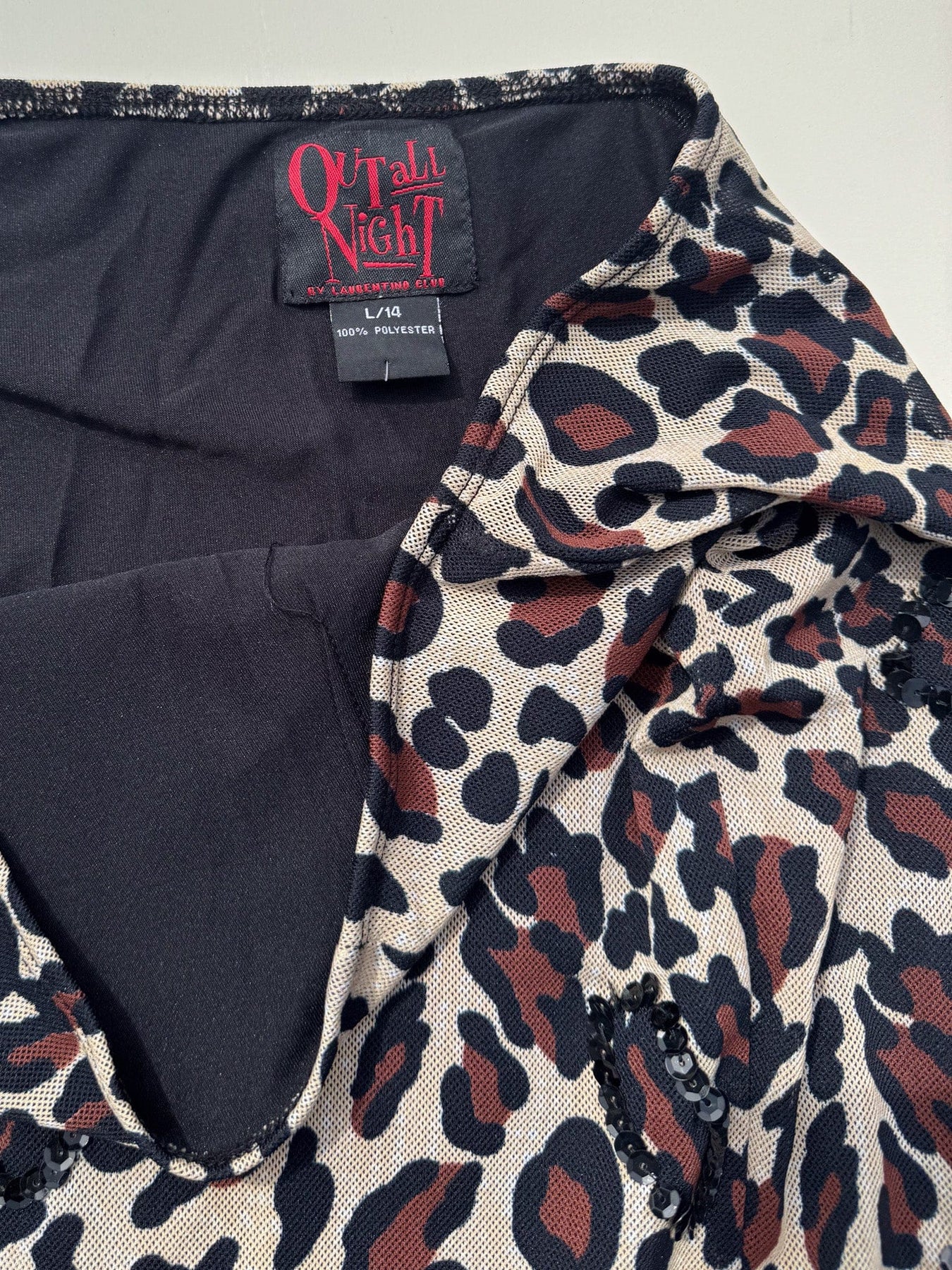 VTG Y2K EMBELLISHED MESH LEOPARD MIDI SKIRT / L
