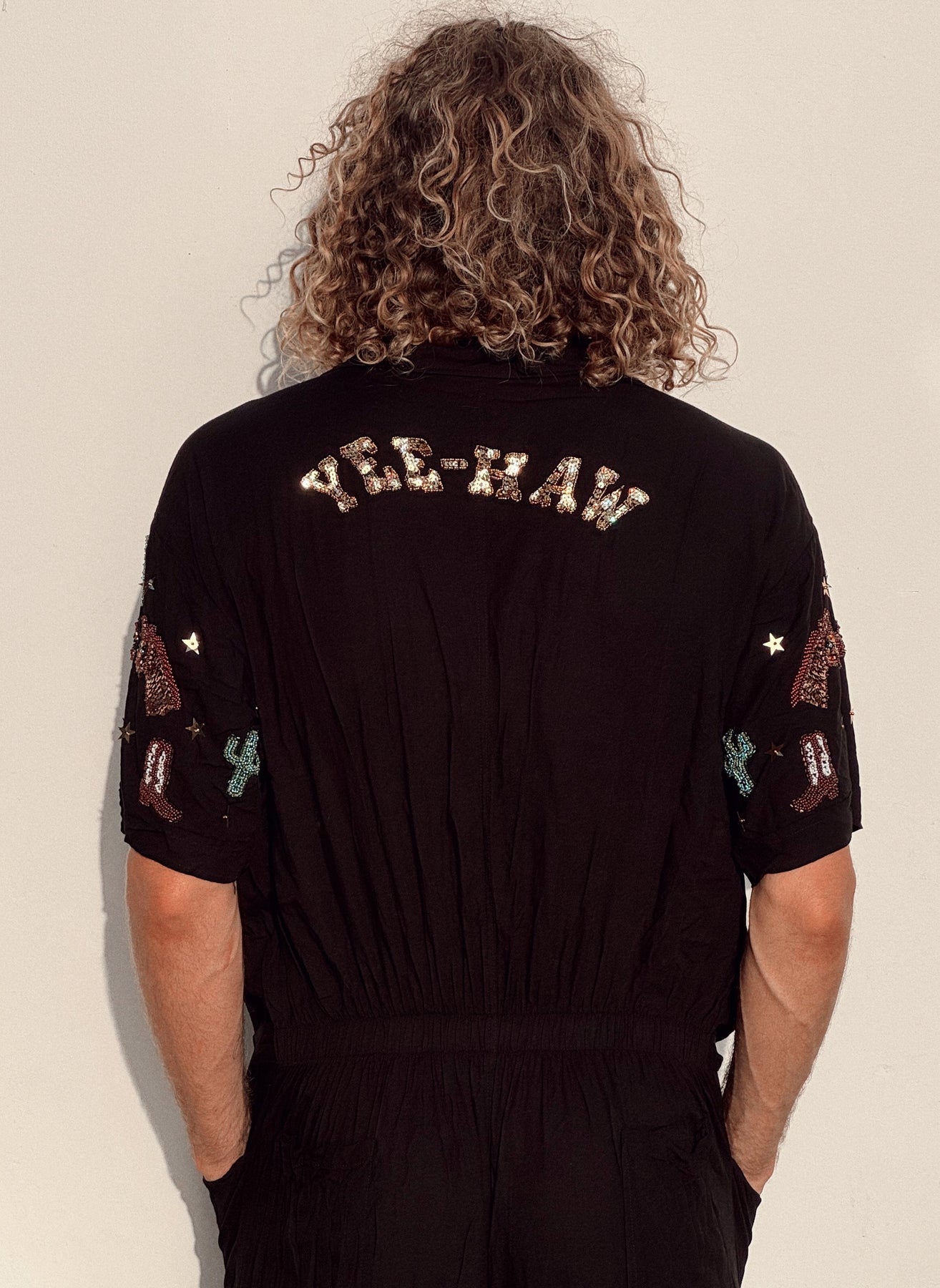 Hey there rockstar. The Yeehaw Western Sparkle boilersuit is intricately detailed with playful designs of horses, cacti, cowboy boots, and horseshoes & will have you sparkling like the superstar you are – made from a breathable rayon fabric, this showstopper is an absolute festival must have.