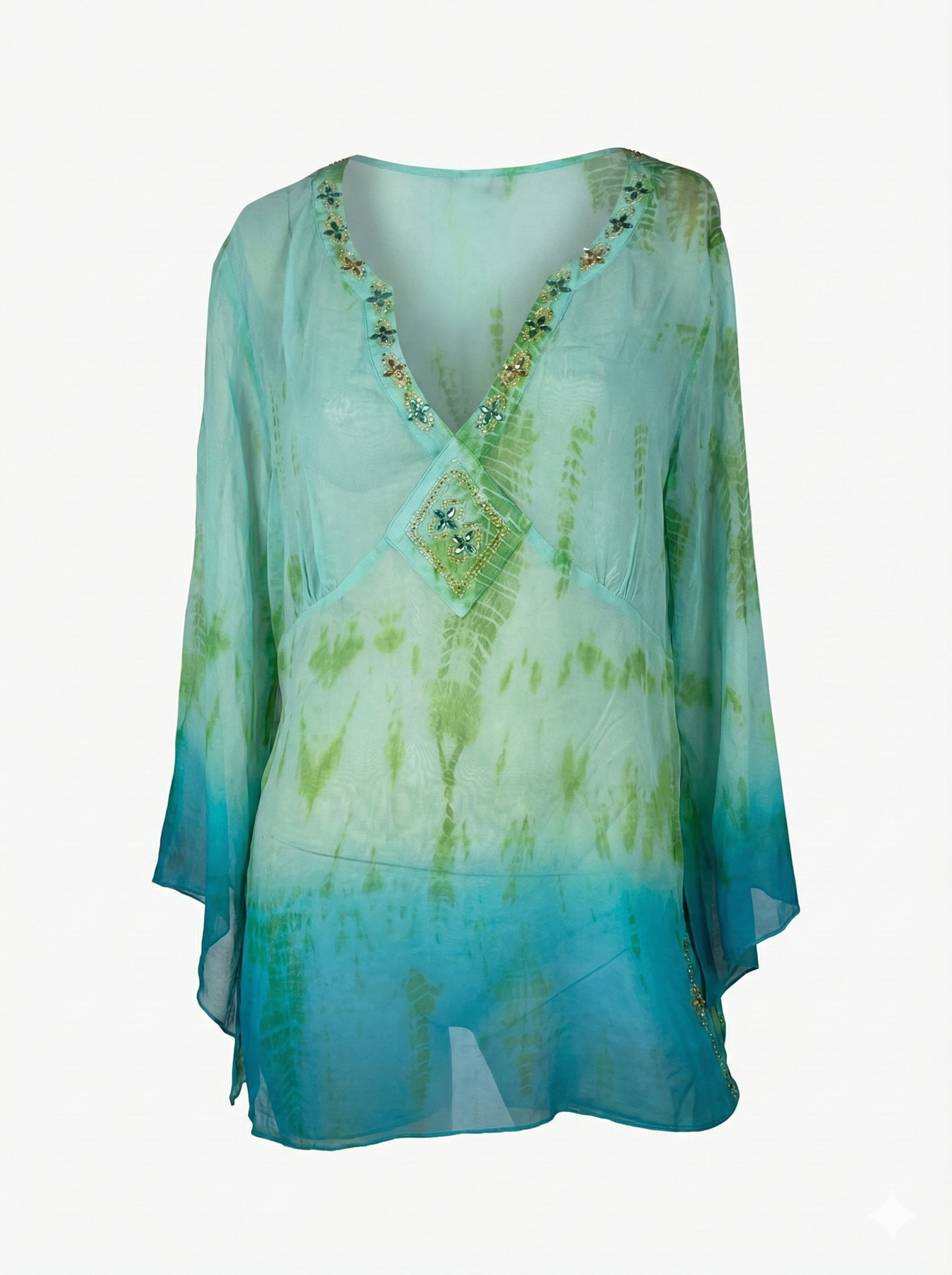 VTG GREEN FLOATY REAL SILK DYE KAFTAN LONG TOP / XL