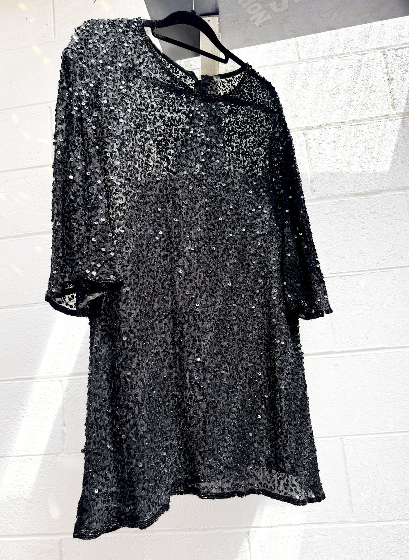 VTG SPARKLE SEQUIN BLACK LOOSE STYLE BLACK LONG TOP / L-XL