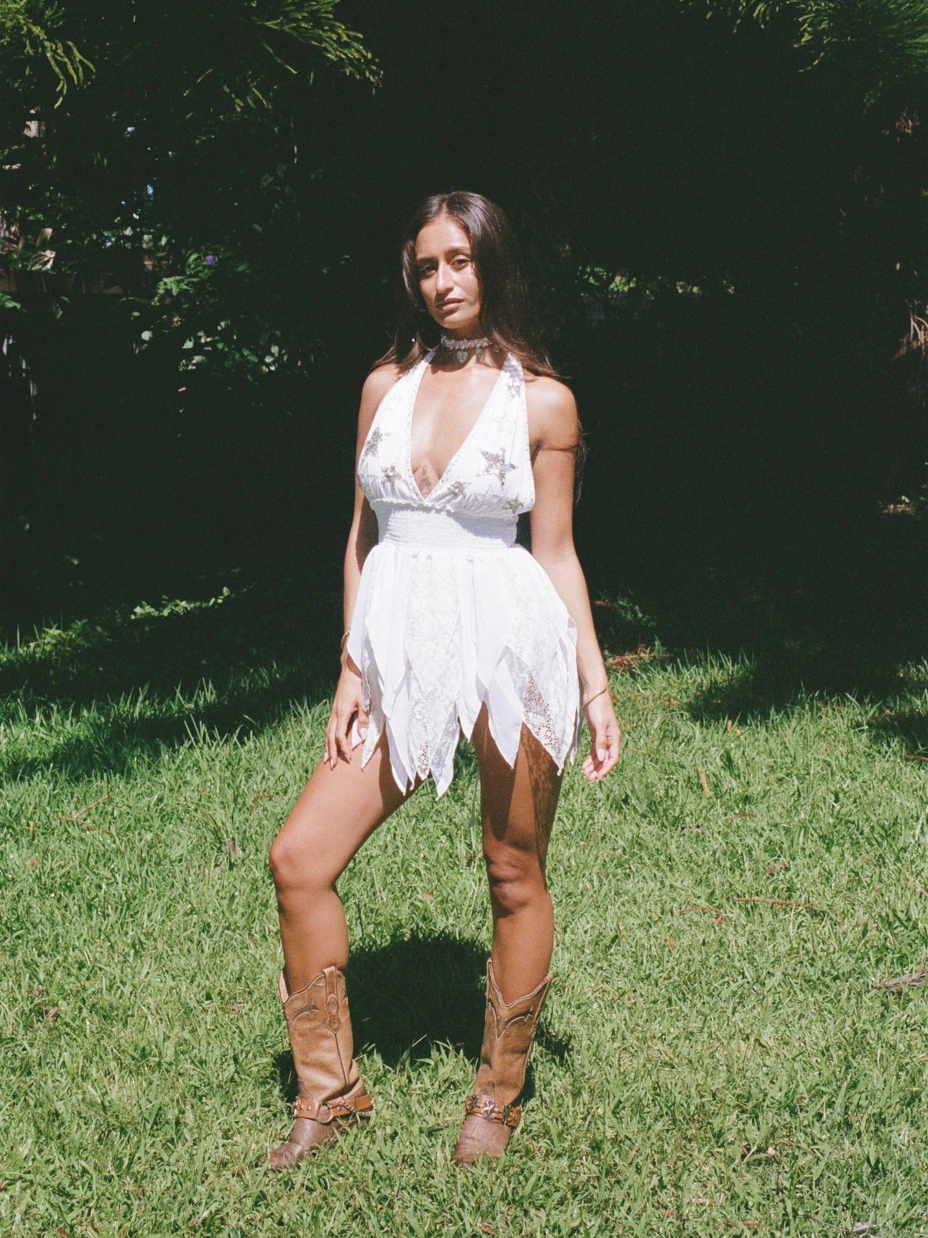 PHOENIX SPARKLE STAR PIXIE MINI DRESS  - WHITE - Her Pony