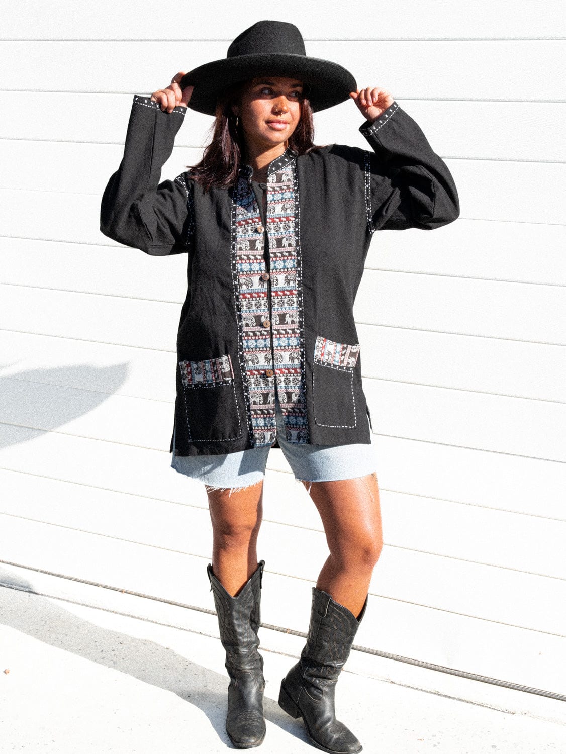 VTG EMBROIDERED LIGHT JACKET / L - XL