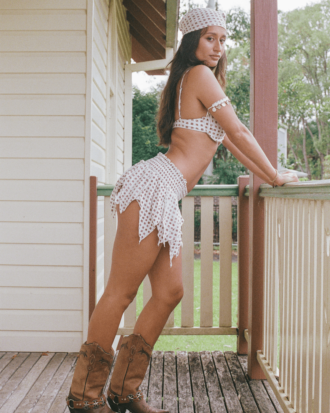 Meet the Felix Scarf— Tie it as a dust mask for festival days, wrap it around your neck for a western edge, or wear it as a bandana, hair ribbon, or hat accessory. Knot it on your bag, around your thigh, or even style your dog to match—wherever you put it, it adds that extra touch.