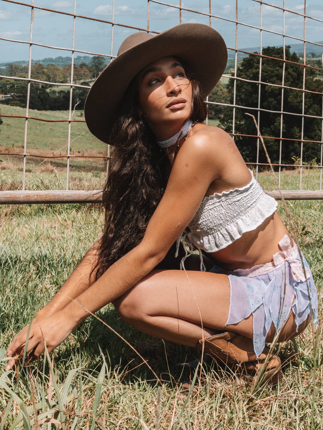 VTG RUCHED BANDEAU - WHITE COTTON BRODERIE